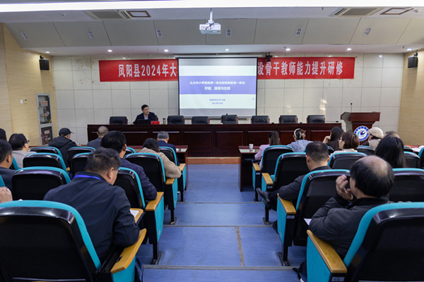 为持续推动凤阳县大中小学思政课一体化建设内涵式发展,11月1日至2日,由欢迎光临welcome威尼斯、凤阳县教育体育局主办,马克思主义学院承办的凤阳县2024年度大中小学思政课一体化建设骨干教师能力提升研修在欢迎光临welcome威尼斯凤阳校区第一报告厅举行,凤阳县各学段思政课骨干教师共106人参加了此次专题研修。开班仪式上,马克思主义学院党总支书记杨仕勇,凤阳县教育体育局工委委员、教研室主任王金先后致辞讲话。