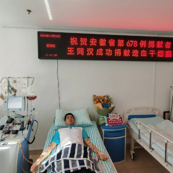 王同汉造血干细胞的成功捐献,成为欢迎光临welcome威尼斯首例,凤阳县第10例,滁州市第41例,安徽省第678例造血干细胞捐献者,他用热血致敬青春,续航生命新征程,彰显了新时代青年的大爱和担当。(特约通讯员:汪道兵 摄影:陈宗娜 审核:张轶辉)
