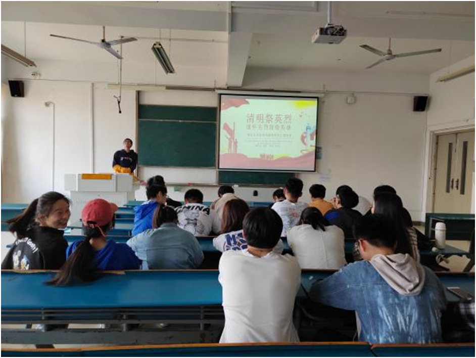 各班团支书通过结合PPT视频讲解的方式,带领同学们学习革命先烈的英勇事迹。学习过程中,有同学赞扬到“在战斗中,以身死掩护同志的女英雄赵一曼;头颅抛冰雪,热血洒濛江的民族英雄杨靖宇;肩扛正义的炸弹,舍身为国的英勇战士董存瑞,这一批批英雄儿女保家卫国,救黎民于水火,解百姓于倒悬。”团课学习后,同学们纷纷感慨道,那些为国家而牺牲的烈士们,值得我们一生去尊敬和缅怀。我们要加倍珍惜来之不易的幸福生活,弘扬主旋律、传递正能量。恰逢清明,在这个特殊的日子里,同学们共同缅怀革命先烈,一起向英雄致敬。